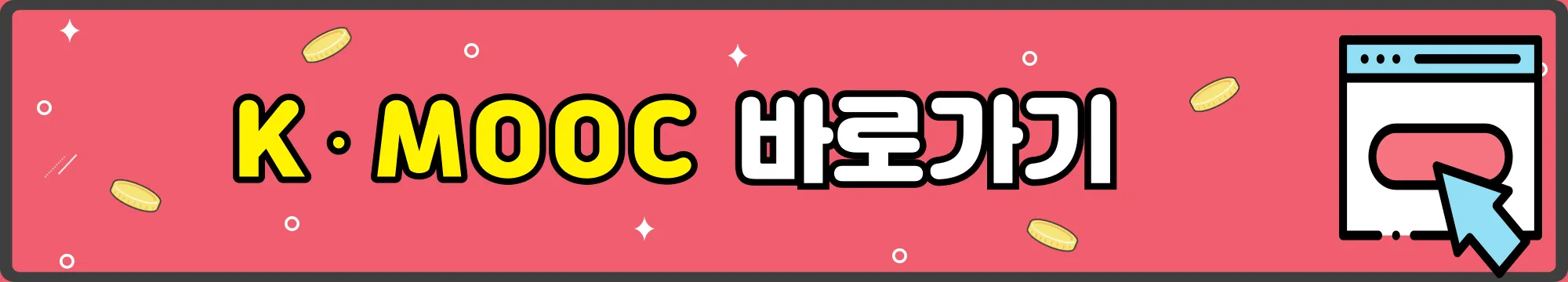 ✅ K-MOOC (케이무크) : 한국형 온라인 공개 강좌 플랫폼으로, 국내 대학교와 기관에서 제공하는 다양한 강의를 무료로 수강할 수 있습니다. IT 관련 강좌도 다수 포함되어 있습니다.